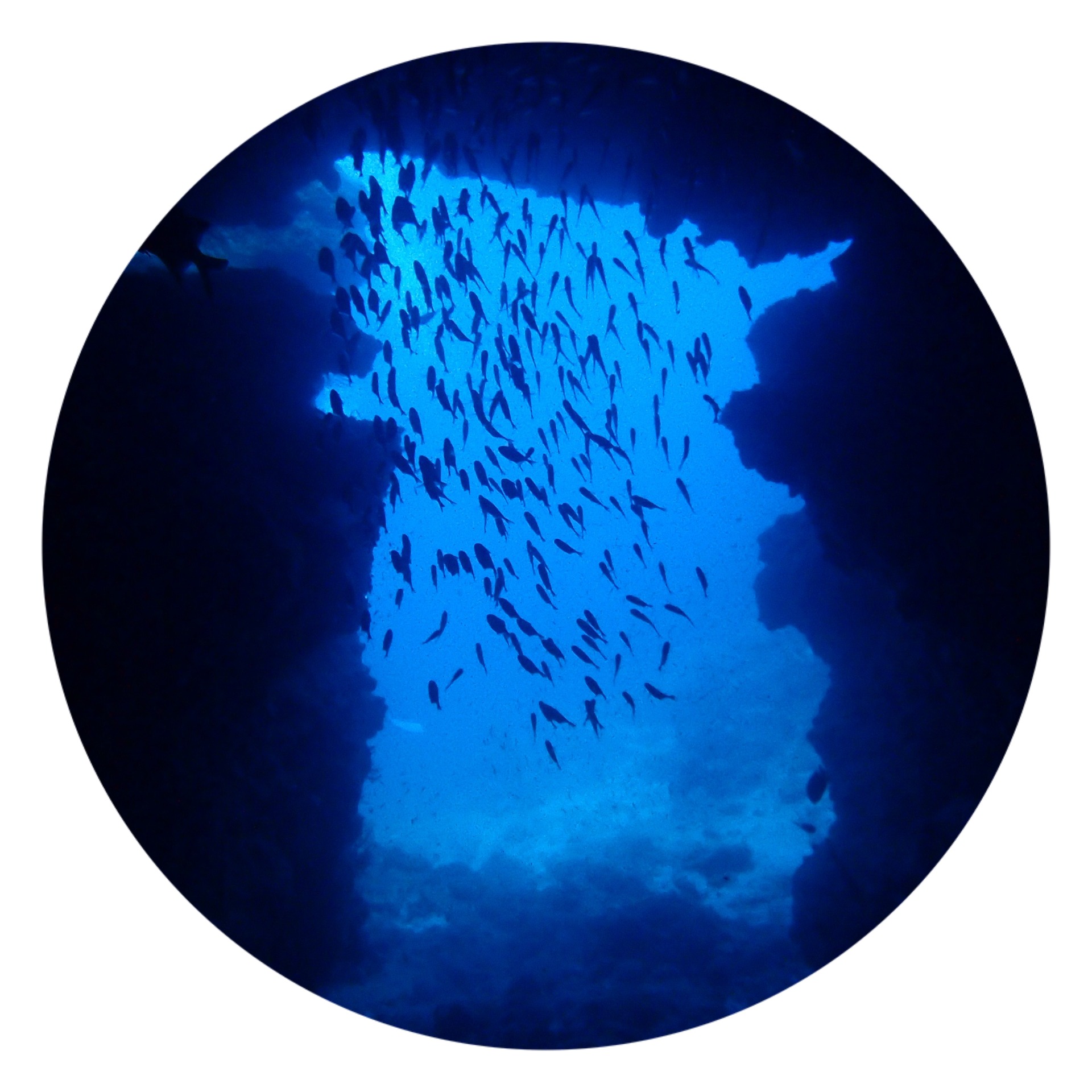 在洞窟的入口,布滿了夢幻般藍色的光芒。除了神秘夢幻的藍色,在青洞行程還可以遇到居住在青洞周圍的熱帶魚類等各種各樣的海洋生物,還可以跟它們親密的合影。